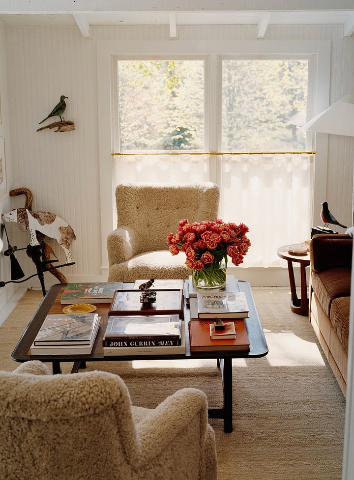 While I am not sure where life will take me, part of me longs for a house on Long Island, or even Upstate New York, or New England (imagine… Maine, Massachusetts, Connecticut, the dream). I know I wouldn’t be able to stand the winters, but if we’re playing the “you win the lottery” game, it would definitely be on the short list. And these pictures would be front and centre on the mood-board (although maybe a little less bouclé, and a little more chintz).