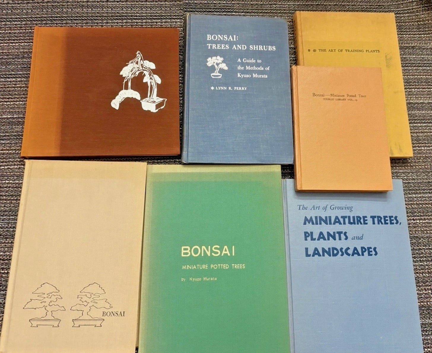 The eagle-eyed amongst you will point out that I am breaking a clear eBay rule of mine with this one: it’s an international listing (gasp). And what’s more, I’m not even sure that I would buy these if I had the space or money for, going against the very premise of this Substack! And yet… I find myself including it here. I love the colours, the typography, the gentle fading of the linen covers, and the ancient wisdom of the subject matter: Bonsai trees and shrubs. This really is for those that have everything.