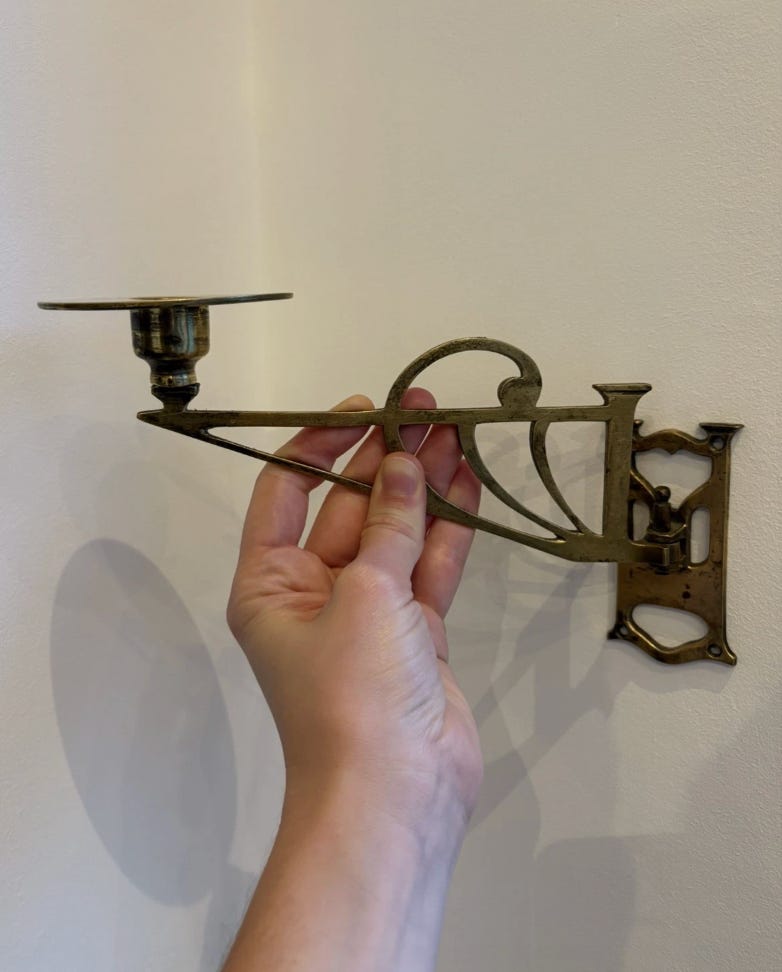 Give me a brass, articulated, wall-mounted candle sconce, and I am putty in your hands. If you’d asked me a few years ago I would have balked at Art Nouveau (I’m a Georgian purist at heart), but this has really taken my fancy. It would be just the thing beside a bath, or even in a kitchen to give atmospheric light. And a great price.